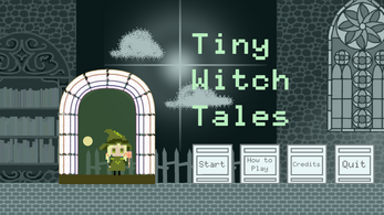Tiny Witch Tale is a 2D pixel-art platformer set within a dim, interior world built from towering stacks of books, brick walls, and stained glass. You play as a tiny witch navigating a space that feels both magical and toy-like, where everyday objects behave as playful systems rather than static scenery.